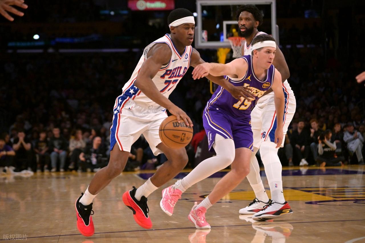 末节初段,里夫斯上来拆炸弹三分命中反超,然后面对埃奇库姆三分再中,紧接着造犯规罚球,一人连砍8分,马克西造犯规两罚以后,詹姆斯反击打进进入暂停。回到比赛,乌布雷也来罚球,但斯玛特连中三分,里夫斯三分续上,湖人已经领先到了13分。詹姆斯反抢犯规以后,自己连得5分,马克西三分止血,76人回敬一波10-0又追到6分,老詹空接暴扣稳定局面。埃奇库姆和马克西追着打,老詹底线球发球直接失误,VJ再进三分续命,最后八成扣篮杀死比赛。
